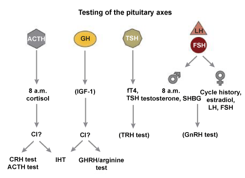 Figure 2: Structured assessment of basal pituitary hormones followed by evaluation with dynamic testing methods. |
