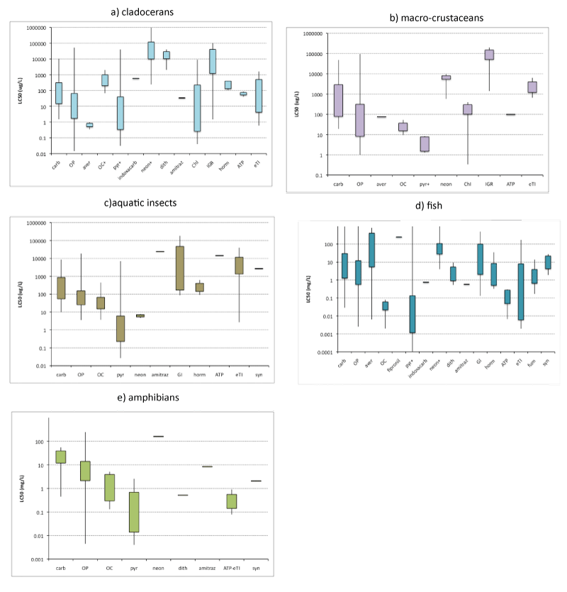 | Figure 1: Abbreviations for the insecticide classes: carb = carbamates; OP = organophosphates; aver = avermectins; OC+ = organochlorines + fipronil; pyr+ = pyrethroids + DDT; neon+ = neonicotinoids + spinosad; ChI = chitin inhibitors; GI = growth inhibitors; IGR = insect growth regulators; horm = hormone mimics; dith = dithiols; ATP = ATPase inhibitors; eTI = electron transport inhibitors; fum = fumigants; syn = synergists. |