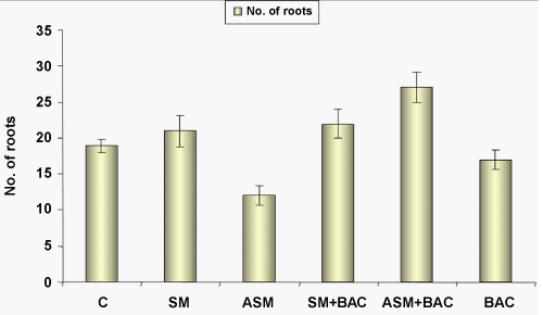 lateral roots of Vigna radiata L. C- Control; SM – Sargassum Manure; ASM- Autoclaved Sargassum Manure; SM+BAC- Sargassum Manure + Bacterial culture; ASM+BAC- Autoclaved Sargassum Manure with Bacterial culture; BAC- Bacterial culture only. |