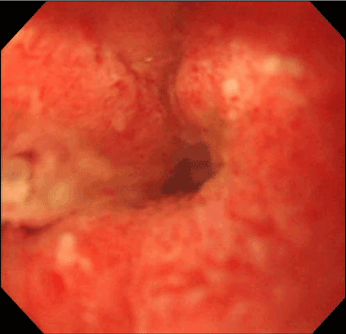 | Figure 2: Endoscopic images of the duodenal metastasis from supraglottic laryngeal cancer. |