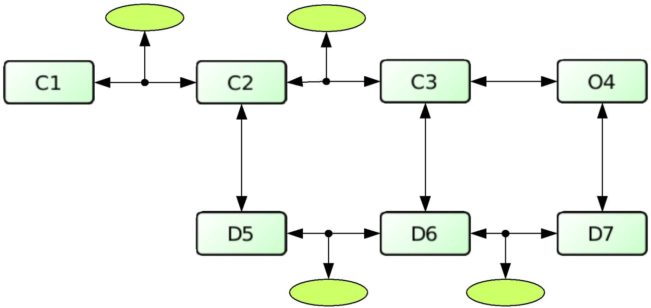 | Figure 3: Kinetic scheme of the AMPA7/NMDA7 model depending to the set of parameters. The rectangles represent the different state variables. The green ovals named Glu represent the input of the model and the location with where it interacts in the model. |