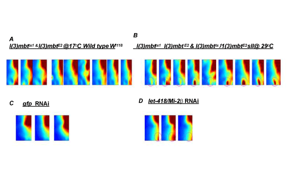 |  a-b: The SOMs of a direct comparison of wild-type Drosophila and l(3)mbt mutant animals in genotype-comparing GEDI assays c-d: The SOMs of a direct comparison of RNAi against control GFP and let- 418/Mi-2β in C .elegans L1 larvae in genotype-comparing GEDI assays The circles in red signify the subset of early genes |