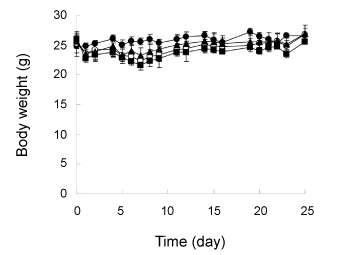 | Figure 1: Body weight changes in UVA-irradiated mice after oral administration