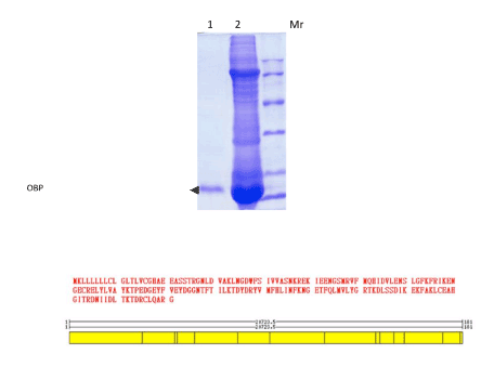 | Figure 1: Proteomics analysis of preputial gland of Indian commensal rat: Lane 2. Proteins were extracted from the preputial gland and 40 μg of protein was separated with the aid of 12 % SDS-PAGE and the total band from the whole cell extract was subjected into the mass spectrometry for proteins identifications. Lane 1 shows the purified for of α2u with the aid of gel filtration chromatography, and its purity was checked with aid of SDS-PAGE in order to identify the α2u isoforms. |