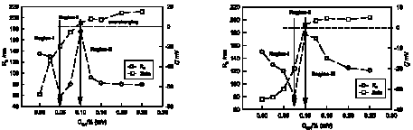 | Figure 17: Plot of hydrodynamic size and zeta potential of DNA-GA intermolecular complexes without and with 0.05% [C8mim][Cl] solutions at pHc where associative interactions ensue and soluble complexes are formed. Here, DNA concentration was fixed at 0.005%. Note the DNA chain softening due to binding with GA in Region-I. Charge reversal and overcharging is clearly seen in Region-III. Dotted line defines complete charge neutrality. Solid lines are guide to the eye. [95] - Reproduced by permission of the PCCP Owner Societies. |