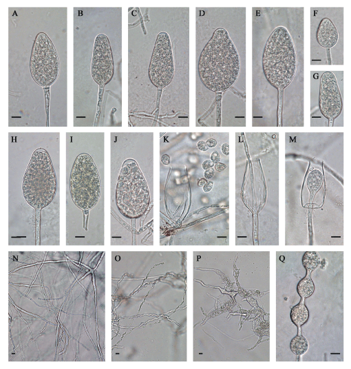 | Figure 5: Morphology of asexual structures of Phytophthora mississippiae: