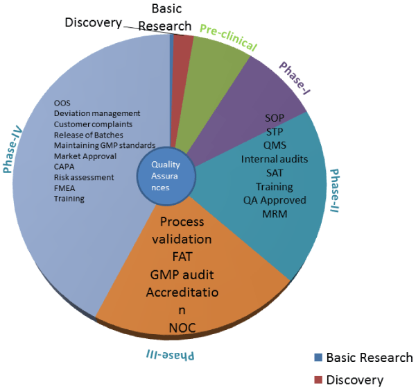 | Figure 5: Roll of Quality Assurance in cell therapy product development-The Quality Assurance Department role in cell therapy product development to post launch of product. Abbreviations: OOS: Out-Of Specification; CAPA: The Corrective and Preventive Action; FMEA: Failure Mode and Effects Analysis; FAT: Field Acceptance Testing; SOP: Standard Operating Procedure; STP: Standard Technical Procedures; QMS: Quality management system; SAT: Site Acceptance Testing; MRM:Management Review Meetings. |
