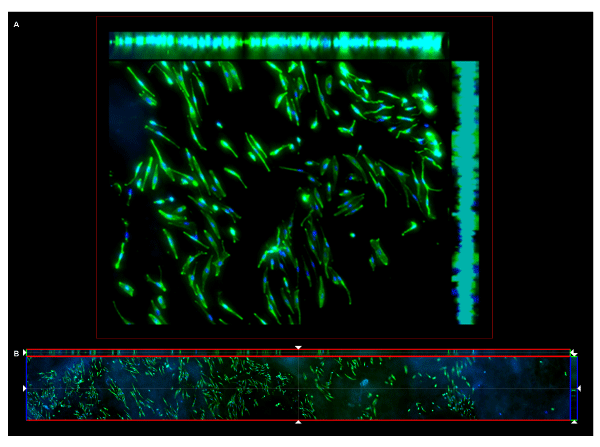membrane. Side projections display the depth of the scaffold reconstructed