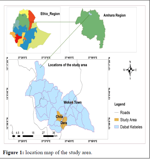 The study was conducted in Dabat district, North Gondar, Amhara region of Ethiopia during 2022 cropping season. Dabat is bordered in the south by Wegera district, in the west by Tach Armachiho district, in the northwest by Tegeda district, and in the Northeast by Debark district.